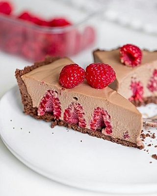 Муссовый тарт с малинойИнгредиенты:Шоколадное биквитное печенье с шоколадной глазурью — 300 гПоказать полностью…Молочный шоколад, растопить — 50 гСливочное масло, растопить — 50 гСвежая малина — 350 гДля мусса:Сливки от 32% охлажденные — 500 млМолочный шоколад, нарезать — 200 гТемный шоколад, нарезать — 50 гЛикер "Амаретто" — 2 ст. л.Желатин в порошке или листовой — 1 ч. л. или 1 листПриготовление:1. Все ингредиенты (кроме малины) положите в кухонный комбайн и смешайте до однородной. Возьмите форму со съемным дном, диаметром 22 см. Положите получившуюся массу из печенья и распределите ее по дну формы и краям. На дно уложите малину.2. Желатин залейте небольшим количество воды оставьте постоять в течение 10 минут для набухания. 180 мл сливок подогрейте в маленькой кастрюльке почти до кипения, снимите с огня. Добавьте набухший желатин, размешайте до растворения.3. Добавить ликер, шоколад и дайте постоять в течение 2-х минут, не перемешивая. После этого размешайте до полного растворения шоколада. Оставьте мусс остывать до комнатной температуры, но он должен быть еще жидким.4. В чаше миксера взбейте остатки сливок до устойчивых пиков. Постепенно, в 3 этапа, добавьте взбитые сливки в остывший шоколадный мусс, осторожно помешивая лопаткой (только до объединения).5. Вылейте приготовленный шоколадный мусс на дно торта поверх малины.6. Охладите 1 ночь в холодильнике. На следующий день выньте тарт из формы, украсьте по желанию.Приятного аппетита!Автор перевода: receptysfoto#десерты@bon